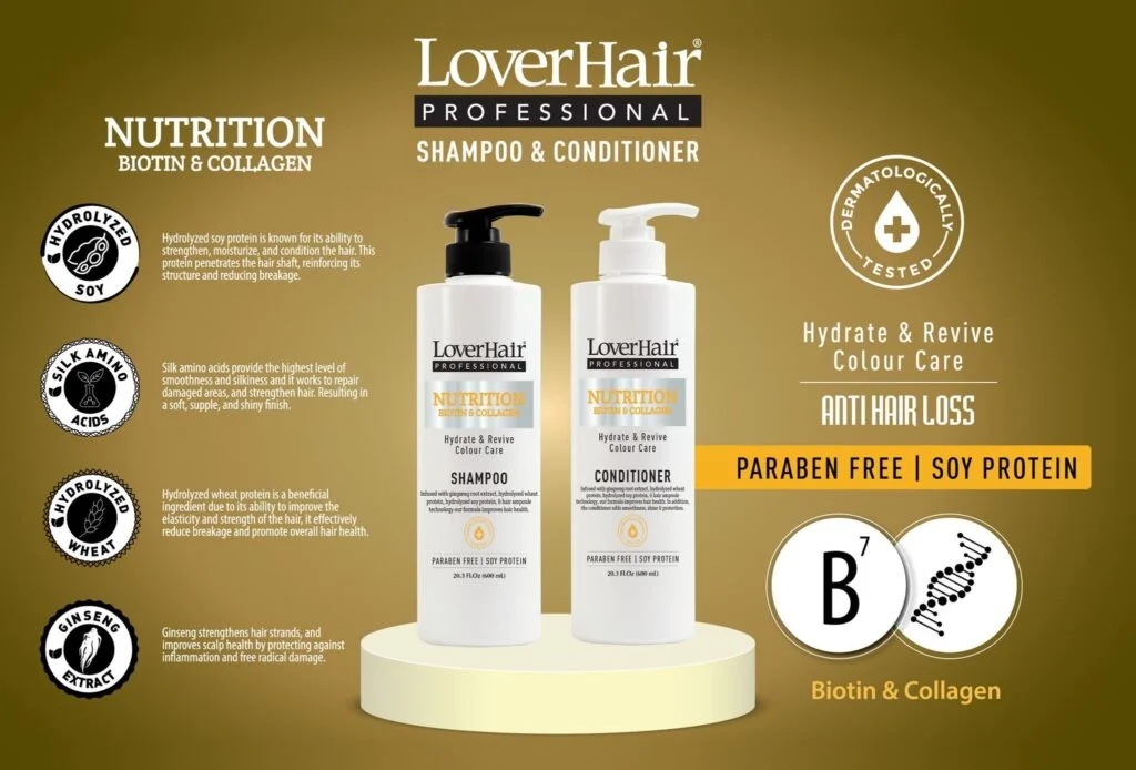 LoverHair Professional Nutrition Shampoo & Conditioner with Biotin and Collagen strengthens, nourishes, and protects hair—paraben-free for healthy, vibrant locks